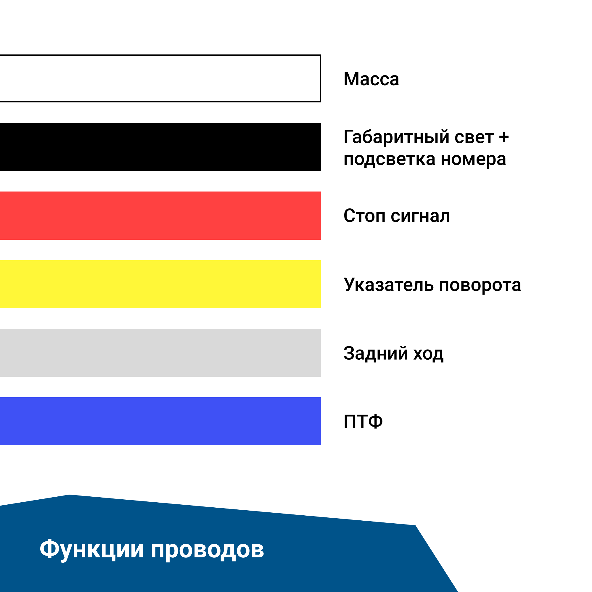 — черный: габаритный свет и подсветка номера